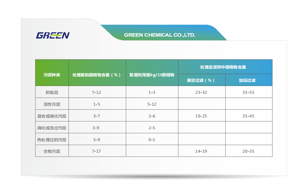有了以上參數(shù),就可以在現(xiàn)場(chǎng)控制與調(diào)整絮凝劑工作狀況,評(píng)價(jià)絮凝劑工作效率,計(jì)算處理每噸污泥(或每噸固相物)需要投加的絮凝劑量,估計(jì)處理每噸污泥的絮凝劑成本。下表是根據(jù)經(jīng)驗(yàn)各種不同污泥脫水前和脫水后(泥餅)的固相物含量及絮凝劑用量: